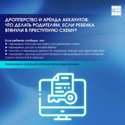 Сегодня подростков всё чаще втягивают в схемы дропперства и аренды аккаунтов — через «подработки», «помощь с переводами» или «сдачу профиля в аренду». Для ребёнка это может выглядеть как безобидная просьба. Для закона — как участие в преступлении.